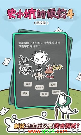 带着童心未泯的乐趣我们一起再次走进校园时代的我们,游戏史小坑的烦恼4囧校园安卓版是一款恶搞校园题材的益智答题手机游戏,玩家可以根据自己五花八门的真实见闻进行代入,获得更加沉浸的爽快体验,通过不走寻常路的奇葩想象力,大开脑洞,解决史小坑的“烦恼”!