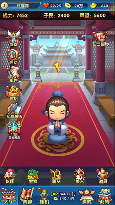 战场厮杀、南征北战、竞赛射靶,百步穿杨等多种玩法你都可以体验到,还有更多好玩的休闲娱乐模块,桃园盛宴、五岳祭拜等有趣的玩法,轻松休闲。青梅煮酒论英雄、貂蝉小乔来相伴,加官进爵走向人生巅峰!