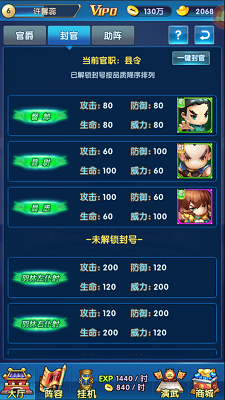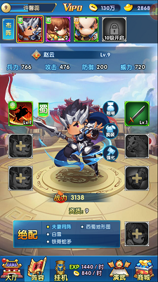 需要注意的是,每位武将都有自己的绝配装备,搭配好了战力更高哦。玩家等级越高,布阵位置就越多,军团总战斗力也就越强!点击布阵即可在后台更改武将位置,切换不同队列,每位武将技能属性都不一样,如何培养出最强劲的战队就看你的培养了!