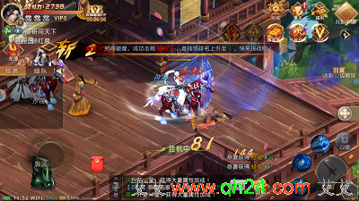 3.活动和PVP:升到一定等级,还能参加各类PVP战场和活动。目前游戏内开放的活动包括皇陵探宝、浪漫温泉、时空幻境、帮派BOSS、世界BOSS等活动,挑战副本、组队副本、离线竞技、群雄争霸等战场。参加这些活动,还能够赢取荣誉值、侠客令、声望等奖励,兑换技能书和进阶道具!