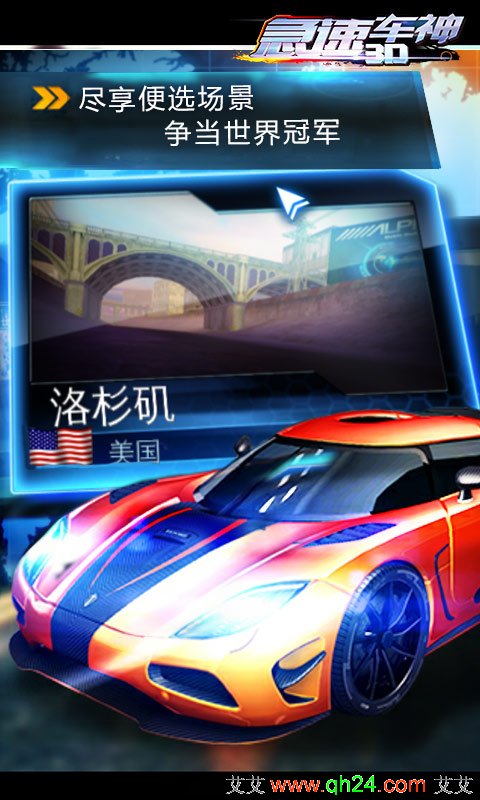 2、各种帅气跑车可供玩家自由选择,每种跑车的外观形态和引擎动力强度都各有千秋让游戏更具可玩性。
