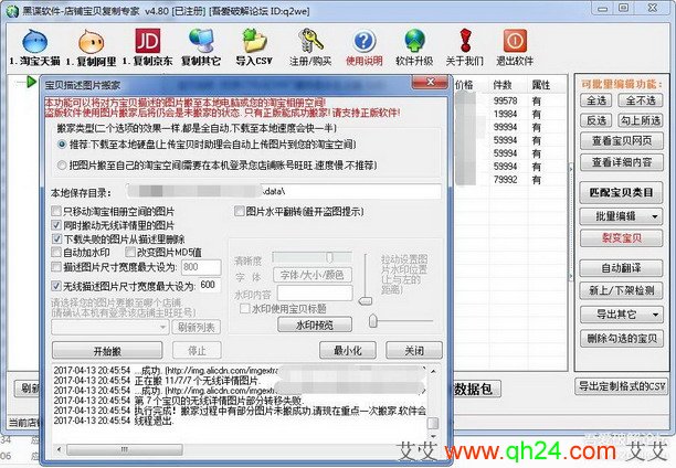 5. 图片搬家支持把图片下载至本地或直接搬至淘宝相册空间,并会自动更新描述里的图片链接。(所有图片保存在软件目录下的data文件夹)
