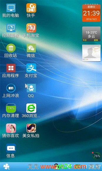 装酷神器是一款运行在以Android 1.6以上操作系统的智能手机(包括Ophone和乐风)或者平板电脑上面的手机桌面插件。本软件完美模拟了Mac的界面风格和操作习惯,集成了资源管理器、任务管理器、控制面板、网页浏览器、歌词同步播放器、 边栏工具、系统托盘、快速应用切换、天气预报、闹钟、时钟等功能。本软件是一款运行在以Android 1.6以上操作系统的智能手机(包括Ophone和乐风)或者平板电脑上面的手机桌面插件,模拟了windows7的界面风格和操作习惯,完美支持包括QVGA、WQVGA、VGA、WVGA、HVGA等各种尺寸的屏幕。