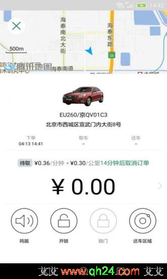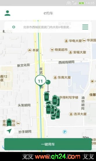 e约车APP,可以通过手机实现在线预约、支付、取车及还车,可为用户提供时租、夜租、日租、月租及充电等相关服务。