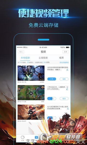 6、浏览、播放、重命名、删除、上传、分享录制好的视频。