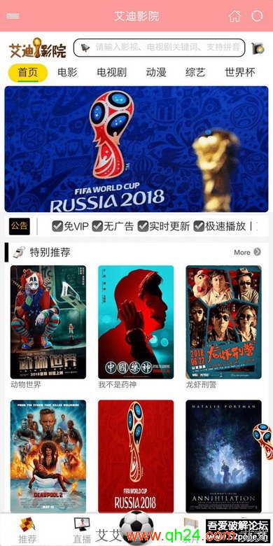 艾迪影院是一款以世界杯主题的手机播放器,可以播放任何视频文件,全网各种电影电视剧免费看,关键还是无广告!