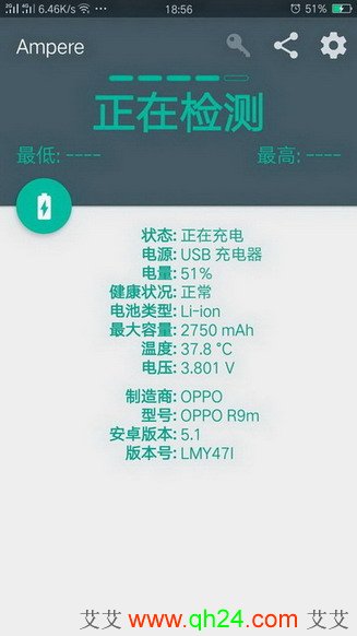 软件名称: Ampere充电评测 软件大小: 7.1MB 是否需要root:否 软件语言:简体中文 测试机型:OPPO手机