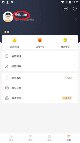 1、于本页面点击下载该软件,进入APP后,点击“我的”,接着点击上方的登录注册。