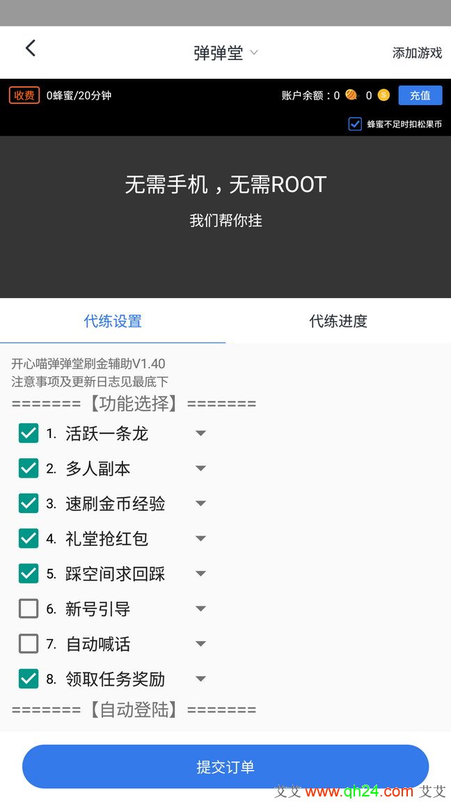 3.进入到代练界面时,点击左侧代练设置,选择挂机的脚本辅助。;