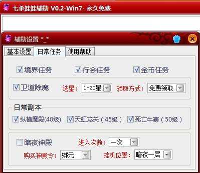 七杀娃娃辅助可自动进行主线任务、支线任务,自动竞技,自动提取练功经验