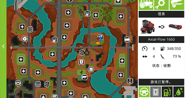 3、拖车作业:当联合收割机装满农作物后,需借助拖车将这些农作物卸下。拖车自身无法行驶,要靠拖拉机拉动。把拖车牵引至联合收割机旁,便会自动完成作物装卸。随后,可将这些作物运到指定地点售卖。