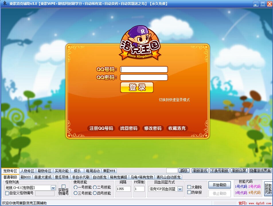 普通刷级,刷BOSS,音速犬速成,傻瓜带练,非自杀带练,自动抓宠,稀有宠捕捉,小帕+稀有宠,清风山自动抓宠