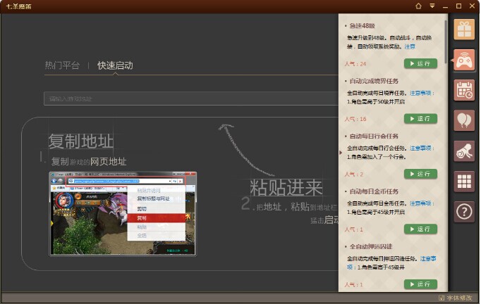 七杀魔笛辅助游戏脚本功能强大,还有礼包一键领取、活动提醒、以及游戏攻略等内容