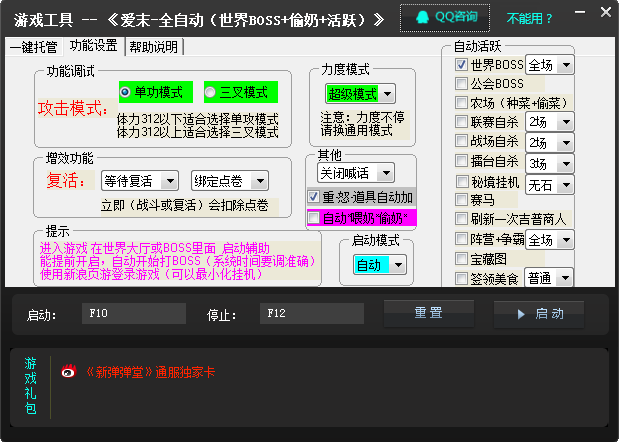 爱末-弹弹堂-全自动(自动世界BOSS+自动偷奶+自动战场+自动秘境+自动农场+自动联赛+自动赛马+自动刷新一次吉普商人+自动签到+自动美食+自动公会BOOS+自动擂台赛+自动争霸赛+自动阵营+自动宝藏图摇免费塞子)