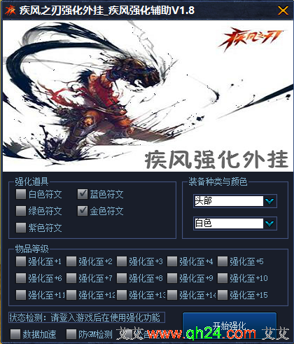 疾风之刃强化辅助是一款专业针对于疾风之刃强化的绿色辅助软件,可针对疾风之刃游戏中装备武器强化的成功几率做出强制性修改提高,使游戏中武器装备强化变得轻松,有效防止强化中装备因强化失败而消失和节省所需强化石和游戏币。
