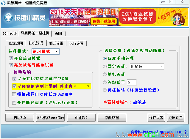 风暴英雄一键挂机辅助目前完全是一款免费版,辅助支持练习、合作、快速比赛三种模式,提供截屏比赛结果、断线重连、根据战局自动降低cpu占用率、经验值达到上限时以及选择英雄等功能!