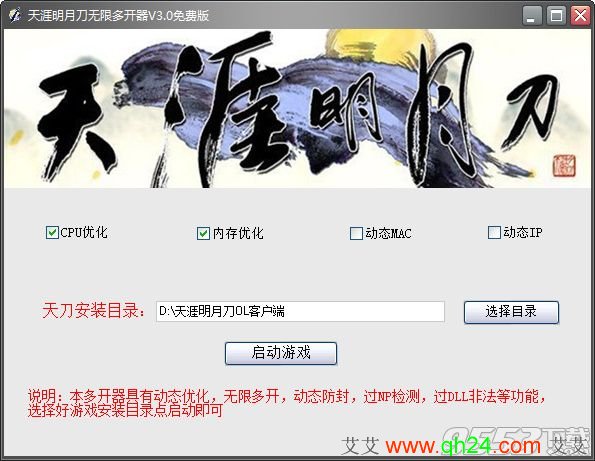 天涯明月刀无限多开器具有动态优化,无限多开,动态防封,过NP检测,过DLL非法检测等功能,选择好游戏安装目录点击启动游戏即可。