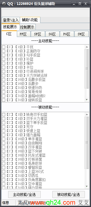 街头篮球全能辅助脚本工具功能多多,稳定强大。完美修改能力值,技能稳定不错乱,不闪退、不掉线,超级盖帽,超级篮板独家功能风骚全场!F1一键开启加强,F3一键关闭,让您用的舒服,支持全系统,支持全屏。如果有需要就拿去吧!