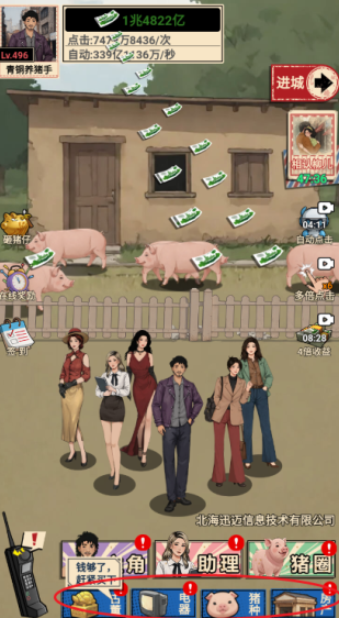 2、随着游戏的进展,玩家可以升级他们的角色和养猪技能。每次升级都可以提高 效率 ,提高猪的生长速度和收入;