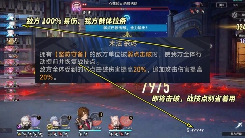 建议②:合理击破敌人,具体方式包括发条群体拉条、圆幕随机单体回能、贩售机恢复2个战技点以及火龙群体增攻。要时刻留意旁侧行动条,关注下一个即将行动的敌方当前是否处于击破状态,特别是发条会对敌方群体拉条,此时应优先进行击破以打断其行动。