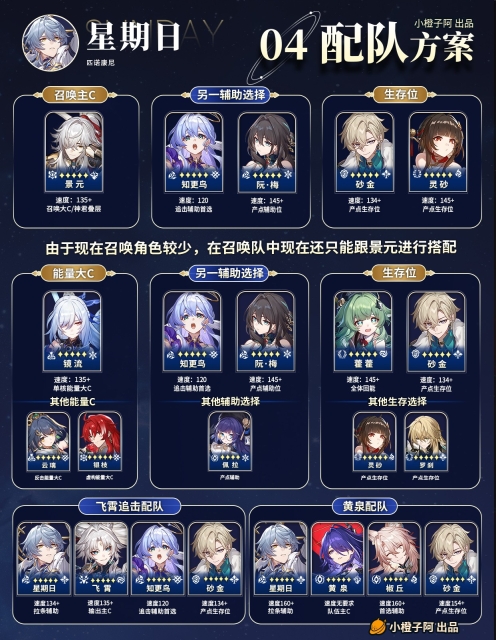 ① 星期日在召唤体系中能发挥出更大价值,不过现在契合星期日的召唤角色就只有景元,可以等一下后续版本的召唤大C。